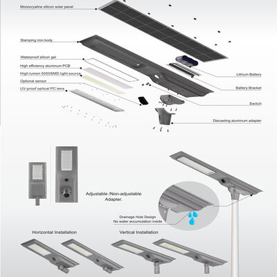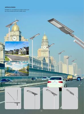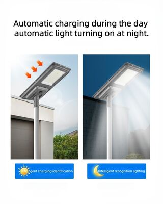 The IP65 waterproof rating protects the light from rain, dust, and harsh weather. Aluminum alloy housing resists corrosion and temperature changes, ensuring long-term stability. This rugged construction allows the solar street light to operate reliably year-round with minimal maintenance, suitable for both residential and municipal lighting.