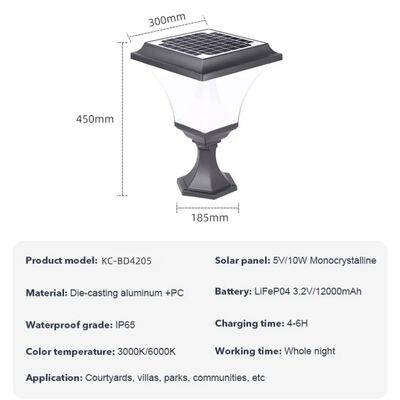 LED Solar Pillar Light With Smart Light Sensor Weather-Resistant Design for Villa Courtyard Driveway Pillars