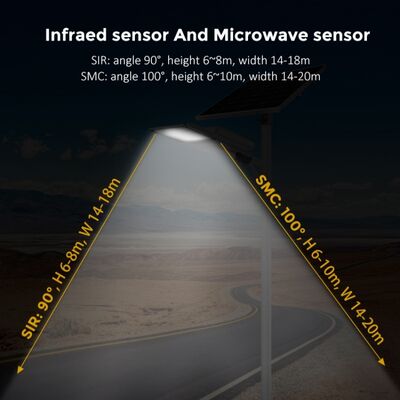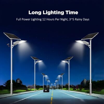 Rated IP65 for waterproof and dustproof performance, this Solar Street Light is built to endure harsh weather. It is ideal for pathways, residential streets, parks, parking lots, campuses, and other public or commercial outdoor lighting needs.