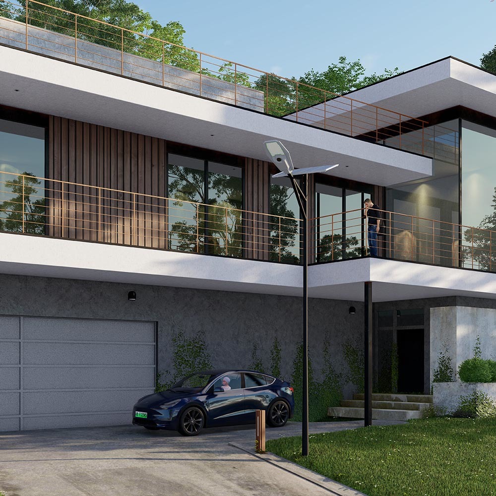 Đèn đường năng lượng mặt trời kiểu tách rời áp dụng khái niệm thiết kế mô-đun tiên tiến, với việc lắp đặt riêng biệt tấm pin mặt trời và đầu đèn. Thiết kế này không chỉ tối ưu hóa hiệu quả hấp thụ ánh sáng mà còn đảm bảo tính thẩm mỹ và sự phối hợp tổng thể của bộ đèn. Thân đèn được làm bằng hợp kim nhôm cường độ cao, được xử lý oxy hóa anốt, mang lại khả năng chống ăn mòn và tản nhiệt tuyệt vời. Đầu đèn đường được trang bị chip LED công suất cao, đạt hiệu suất 160 LM/W. Kết hợp với thấu kính quang học chuyên nghiệp, nó cung cấp ánh sáng rộng, không chói và đồng đều. Sản phẩm đặc biệt nhấn mạnh sự cân bằng giữa tính thực tế và vẻ đẹp, với thiết kế đường nét gọn gàng và cách phối màu cổ điển, cho phép nó hòa nhập hoàn hảo vào các cảnh quan đô thị khác nhau, khiến nó trở thành đại diện tốt nhất của chiếu sáng xanh hiện đại.