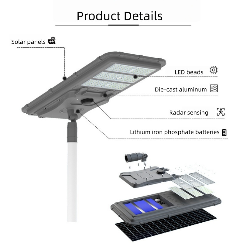 This solar street light is tough enough for any climate. With its IP65 waterproof rating, anti-corrosion aluminum body, and sealed LED module, it stands up to rainstorms, heat, dust, and wind. Count on years of stable, low-maintenance lighting wherever you install it.